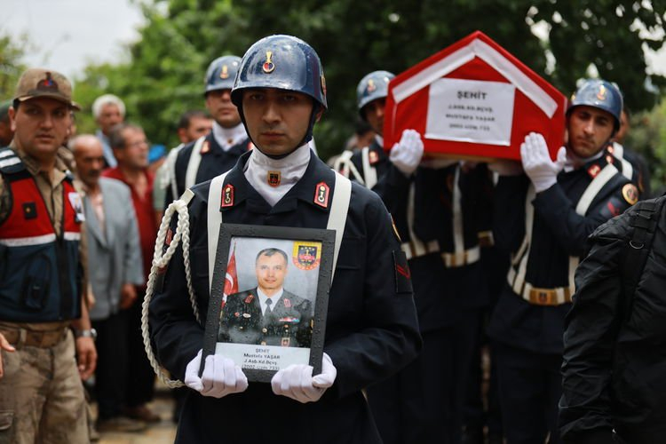Erzurum'da 3 Temmuz 2023'te kavgaya müdahale ettiği sırada yaralanan ve tedavi gördüğü hastanede dün şehit olan Jandarma Astsubay Kıdemli Başçavuş Mustafa Yaşar'ın cenazesi Hatay'da toprağa verildi