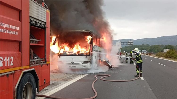 Aracı güvenlik şeridinde durduran sürücü, 30 yolcuyu tahliye edip durumu 112 Acil Çağrı Merkezi'ne bildirdi.