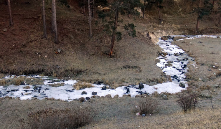 Bazı vatandaşlar araçlarını battaniye ile örterek soğuktan korumaya çalışırken, ilçeye 5 kilometre uzaklıktaki Acısu Deresi de tamamen dondu.