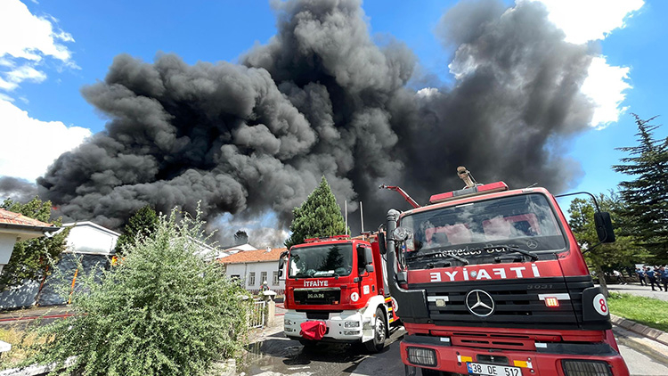 Kayseri Organize Sanayi Bölgesi 11. Cadde'de bulunan sünger fabrikasında henüz belirlenemeyen nedenle yangın çıktı.