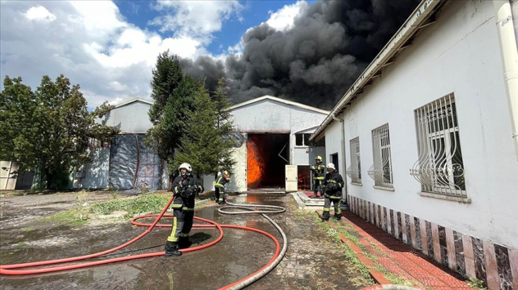 Hasar gören fabrikada ekipler soğutma çalışması da yaptı.