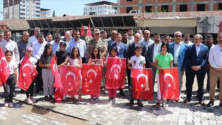 Öğretmen Yalçın'ın şehit düştüğü yerde düzenlenen törende, saygı duruşunda bulunuldu, İstiklal Marşı okundu.