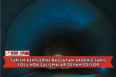 Turizm kentleri Mersin ve Antalya'yı birbirine bağlayan kara yolunda hem mesafe hem zaman avantajı sağlayacak Akdeniz Sahil Yolu Projesi'nde tünel ve viyadüklerin yapımı sürüyor.