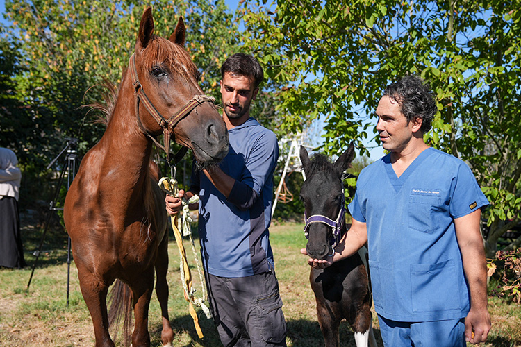 Prof. Gündüz ve ekibi, İstanbul'un Arnavutköy ilçesindeki Boyalık köyünde misafir edilen tay ile ailesini basın mensuplarına tanıttı.