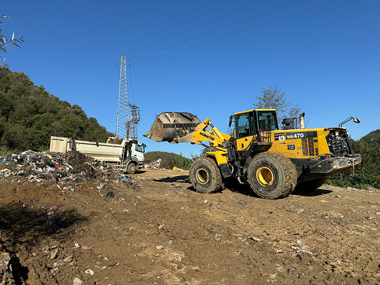 Boğaz Mahallesi'ne ulaşan yolu kapatan ve Bartın Irmağı mevkisine kadar gelen çöp yığınları, İl Özel İdaresi ve Bartın Belediyesi ekiplerince kepçelerle kamyonlara yüklenip, yeniden yer açılarak uygun hale getirilen vahşi depolama alanına götürülüyor.