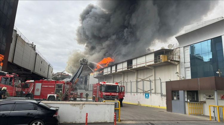 Sancaktepe'deki iş yerinde çıkan yangına itfaiye ekiplerince müdahale ediliyor.