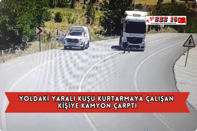 Yoldaki Yaralı Kuşu Kurtarmaya Çalışan Kişiye Kamyon Çarptı