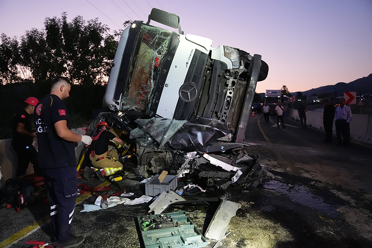 Yolda savrulan tır, daha sonra yolun sağında hareket halindeki Ahmet Cevher'in kullandığı 07 MAS 11 plakalı otomobilin üzerine devrildi.