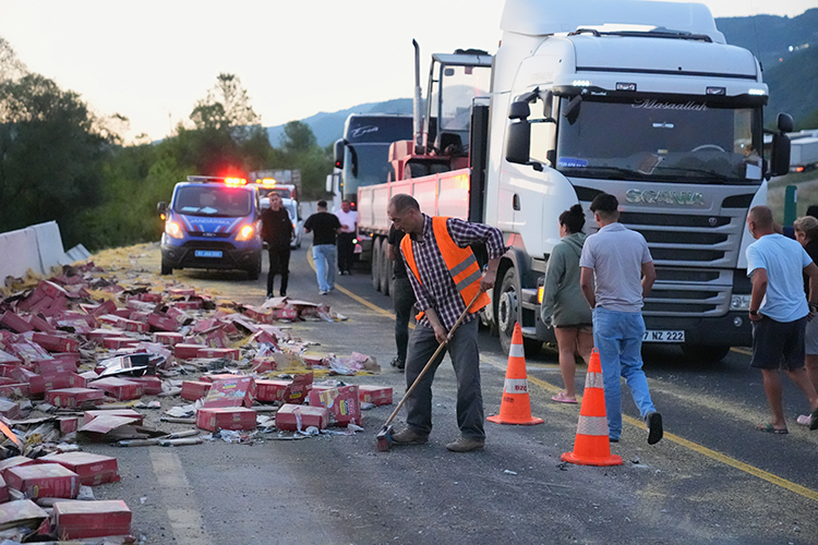 Kaza nedeniyle kara yolunun İstanbul istikameti yaklaşık 1 saat ulaşıma kapandı.