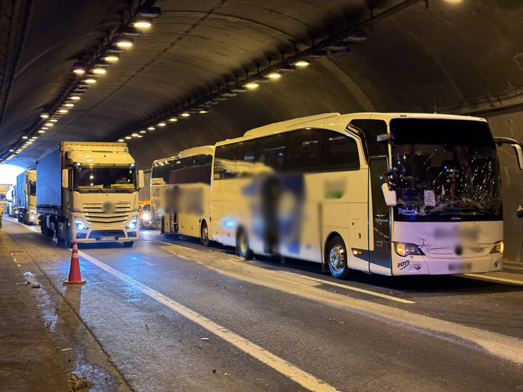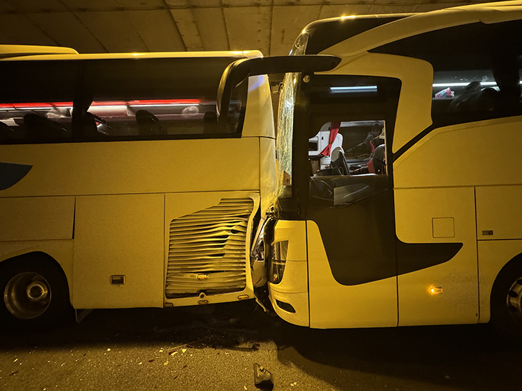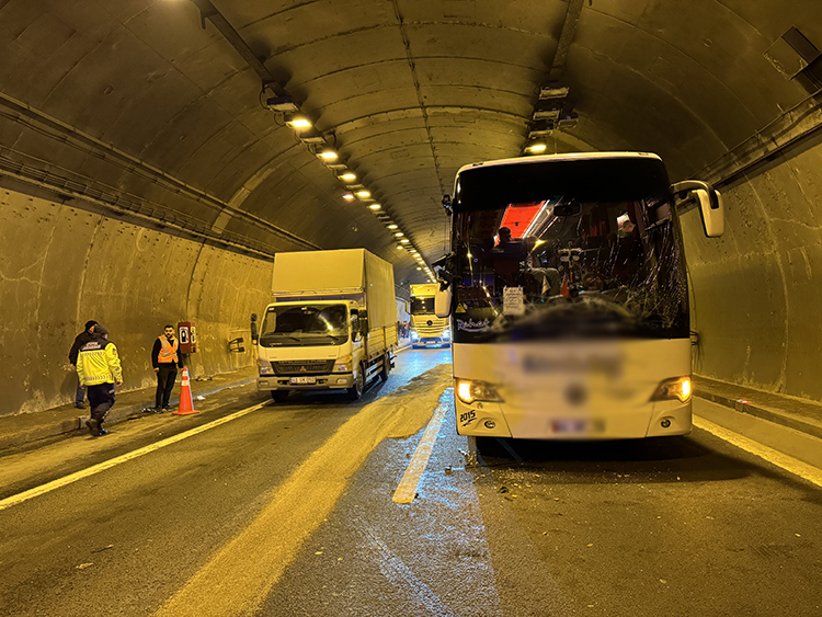 Otoyolun İstanbul istikameti Korutepe Tüneli mevkisinde 2 otobüs ve 1 tırın karıştığı zincirleme trafik kazası meydana geldi.