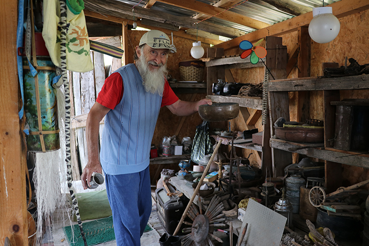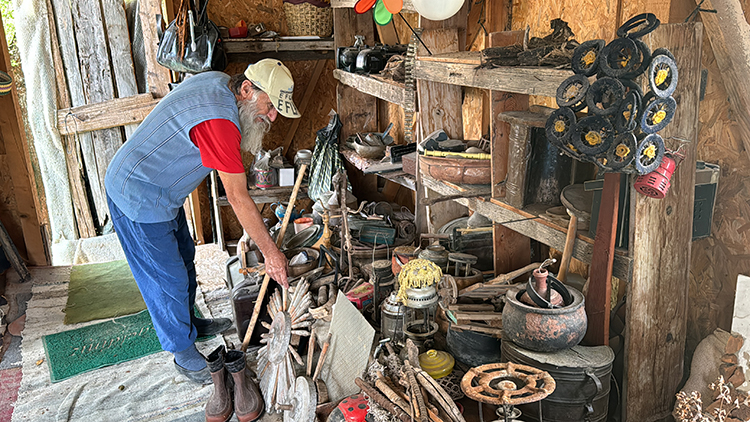 Karabük'ün Eflani ilçesinde şiir ve araştırma kitaplarının yanı sıra çok sayıda resim çalışması bulunan 74 yaşındaki Fahri Öztürk, 25 yıldır geçmişte köylerde gündelik işlerde kullanılan eski eşya ve araçları evinde topluyor.