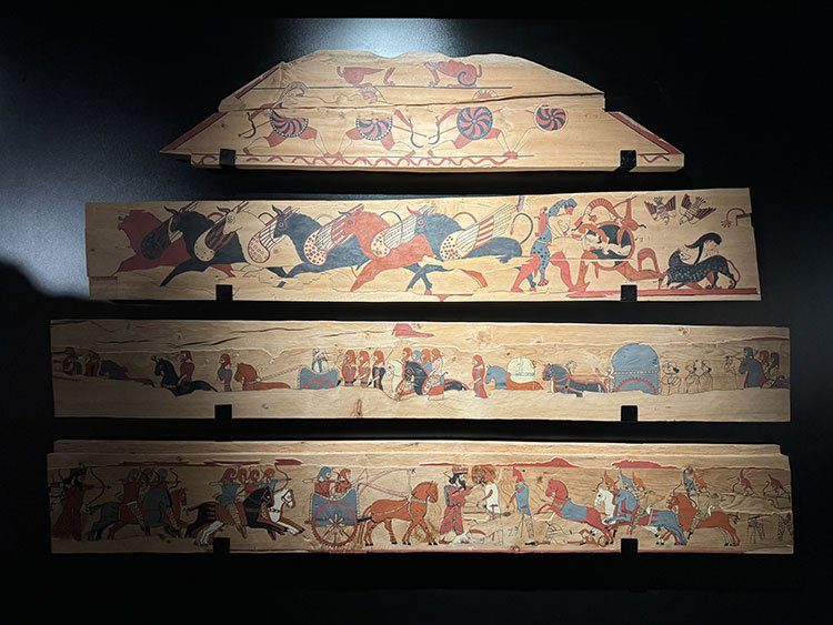 Kurt, kirişlerdeki ahşap görsellerin milattan önce 5. yüzyıla ait yaşantının kültürüne dair izlerin yanı sıra bir sahnesinde Persler ile İskitler arasındaki savaşı betimlediğini dile getirdi.