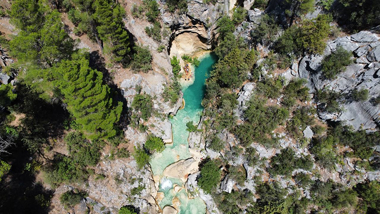 Antalya'nın Akseki ilçesinde içinde şelale ve doğal havuzun yer aldığı "Gümüşdamla Kanyonu" maceraseverlerin rotasında yer alıyor.