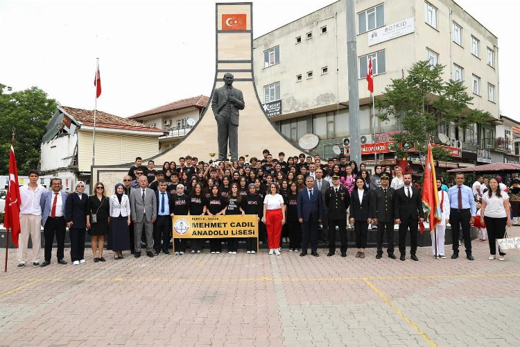 Mehmet Cadıl Anadolu Lisesi öğrencileri tarafından Gençliğin Ata’ya Cevabı okunmasının ardından öğrenciler Türk Bayrakları gösterisi sergiledi. Müzik dinletisi de yoğun ilgi gördü.