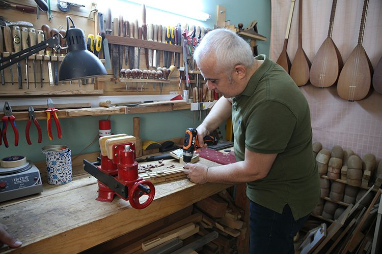 Yukarı Zaferiye Mahallesi'nde bir atölye kuran 54 yaşındaki Parmaksız, 2022'de emekli olarak tüm ilgisini saz yapımına yöneltti.