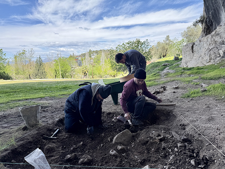 Kazı alanı sorumlusu Prof. Dr. Erdoğu, AA muhabirine, Girmeler'deki mağaraların ağzında ve dışında yok edilmiş höyüğün tabanında kazı çalışması yapıldığını söyledi.