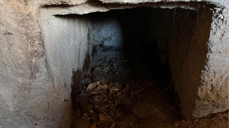 Roma dönemine ait 4 odalı mezarda 3 insana ait kemik bulunduğu tespit edildi.