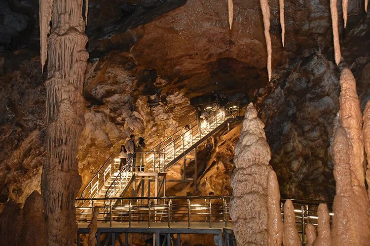 Kent merkezine 17 kilometre mesafedeki Karaca Mağarası, 15 Kasım'dan itibaren yapılan bakım çalışmalarının ardından 9 günlük Ramazan Bayramı tatiliyle birlikte ziyaretçilerine kapılarını açtı.
