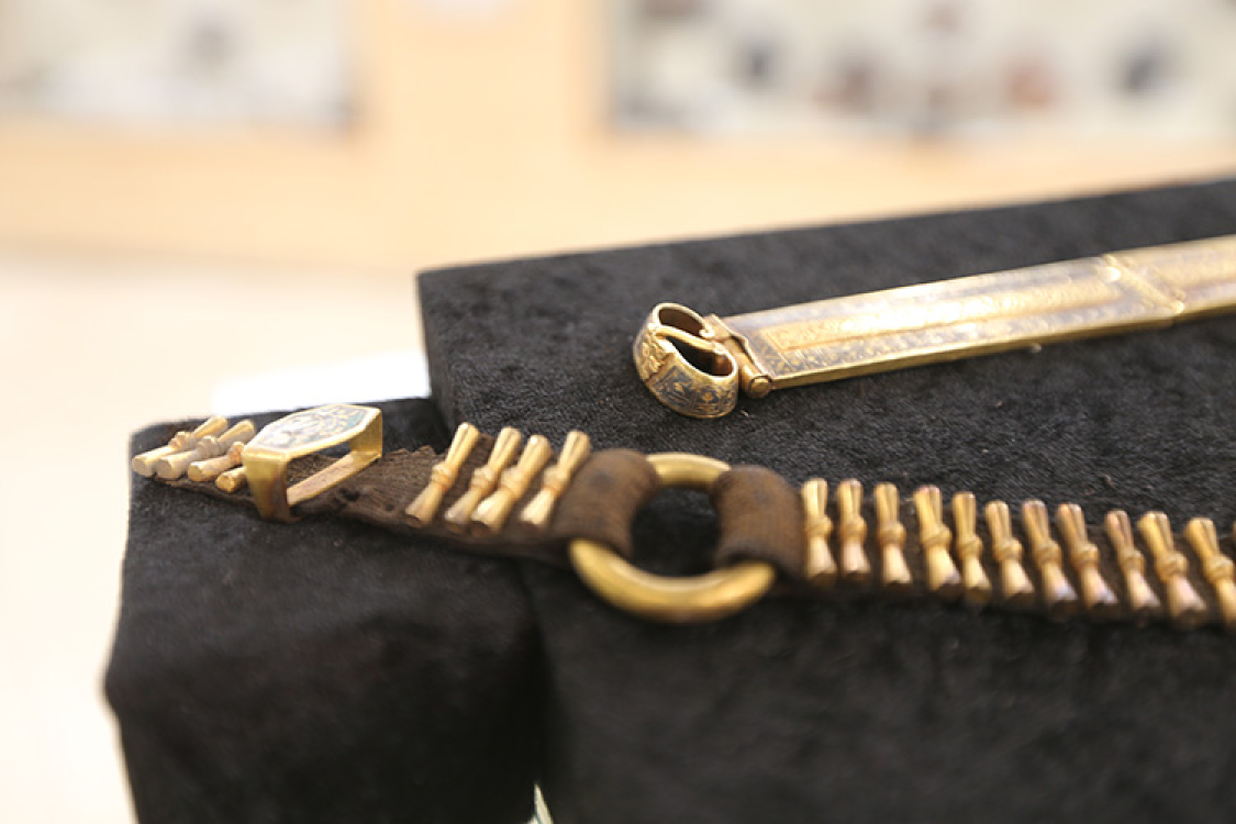 Üzerinde çeşitli figürlerin yer aldığı 432 gram ağırlığındaki altın kemer, muhafaza altında tutulduğu depodan çıkarılarak Kars Arkeoloji ve Etnografya Müzesi'ne konuldu.
