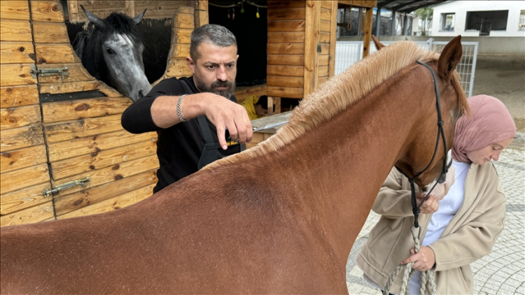 İlçede baba mesleği kuaförlüğü sürdüren 42 yaşındaki Ethem Yıldız, 4 yıldır özel ekipmanlarla ve seyislerin de yardımıyla atların yelelerini kesiyor, bakımlarını yapıyor.