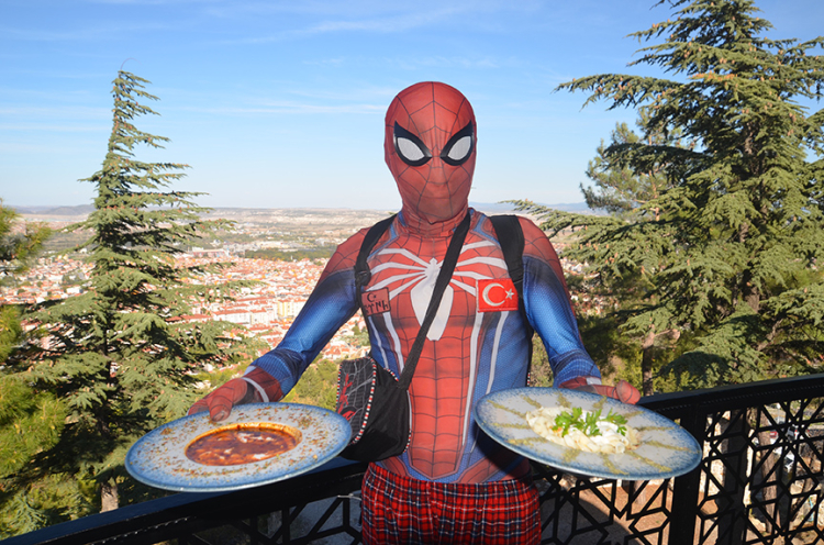 Türkiye'yi gezme hayaliyle "Örümcek Adam" kostümü ile yola çıkan Salih Ayaz Koç'un 48'inci durağı, Kütahya oldu.