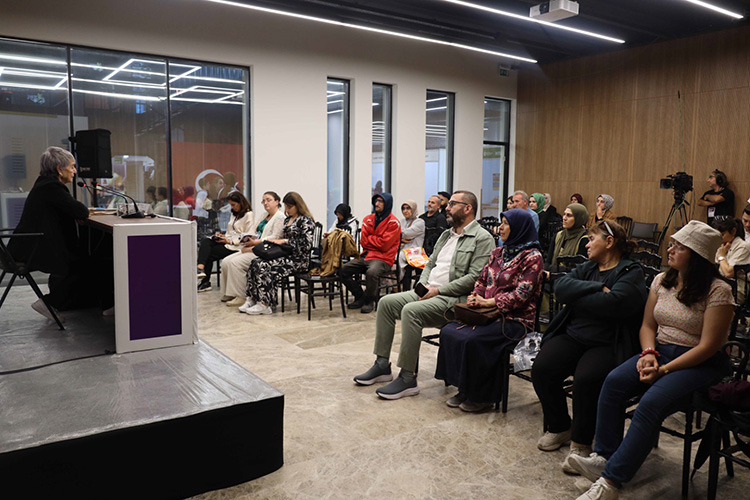 İstiklal Marşı şairi Mehmet Akif Ersoy'un torunu Selma Argon Ersoy, 14. Kocaeli Kitap Fuarı'nda düzenlenen söyleşiye katıldı.