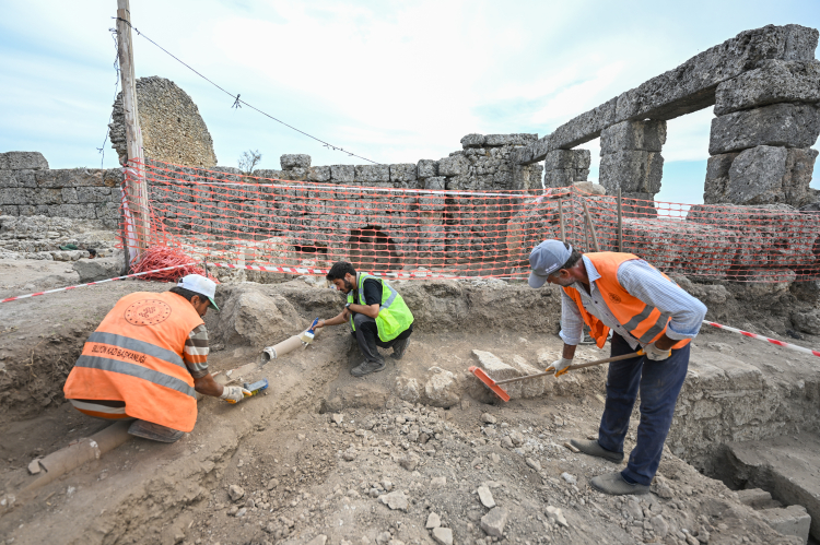 Kültür ve Turizm Bakanlığının bu yıl hayata geçirdiği "Geleceğe Miras Projesi" kapsamında hız kazanan antik kentteki kazı çalışmalarında Roma ve beylikler dönemine ait bir hamam bulundu.