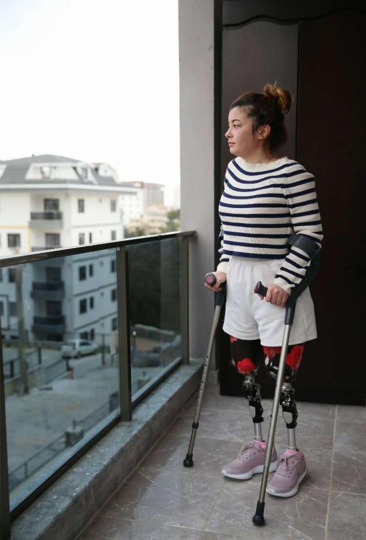Tedaviye rağmen iki bacağını kaybeden Akdoğan, yeni hayatına protez bacaklarıyla ayak uydurmaya çalışıyor.