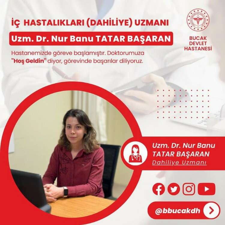 Konuyla ilgili olarak Bucak Devlet Hastanesi Başhekimi Op. Dr. Tanzer Gökkara sosyal medya üzerinden yaptığı paylaşımda; “İç Hastalıkları Uzmanı Dr. Nur Banu Tatar Başaran ve Ortopedi ve Travmatoloji Uzmanı Op. Dr. Sefa Altun hasta kabulüne başladı. Doktorlarımıza “Hoş Geldiniz” diyor, görevlerinde başarılar diliyoruz” dedi.