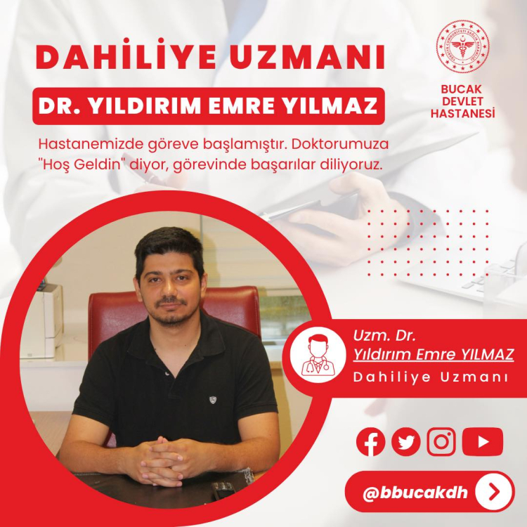 Konuyla ilgili olarak Bucak Devlet Hastanesi Başhekimi Op. Dr. Tanzer Gökkara yaptığı açıklamada; “Dahiliye (İç Hastalıkları) Uzmanı Dr. Yıldırım Emre Yılmaz hastanemizde göreve başlamıştır.
