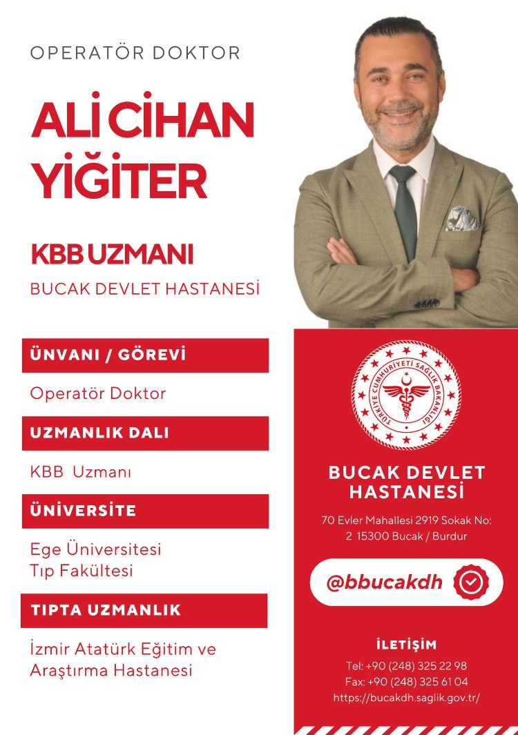 Bucak Devlet Hastanesinde KBB Uzmanı Op. Dr. Ali Cihan Yiğiter görevine başladı.