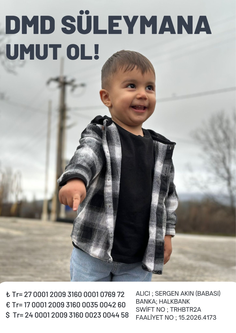 Akın ailesi, 2 yaşındaki çocukları Süleyman Akın için destek bekliyor. Anne Ezgi Akın, “Oğlum 2 yaşında DMD ile mücadele ediyor. 3 aylıkken tanısı koyuldu. Oğlumuz büyüyor ama biz korkuyoruz. Dubai’de süren tedavimiz için sizlerin desteğine ihtiyacımız var” dedi.