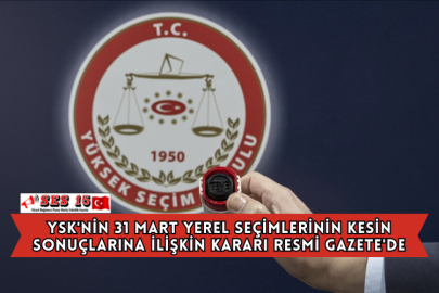 Yüksek Seçim Kurulunun (YSK) 31 Mart Mahalli İdareler Genel Seçimleri'nin kesin sonuçlarına ilişkin kararı, Resmi Gazete'de yayımlandı.