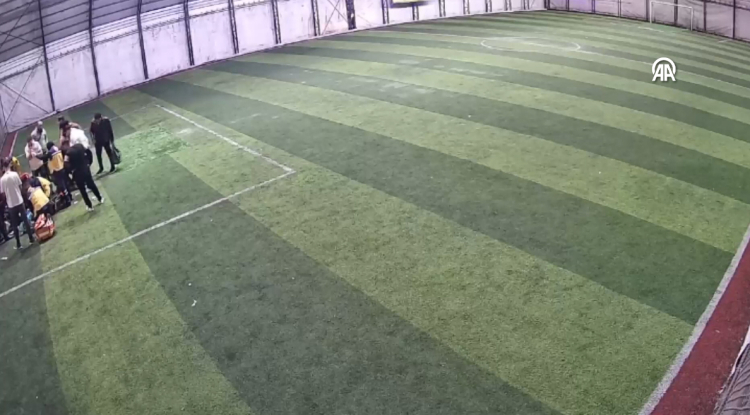 Olay, halı sahanın güvenlik kamerasınca kaydedildi.