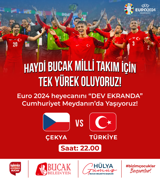 Milli maç Bucak Belediyesi tarafından Cumhuriyet Meydanında kurulan dev ekrandan izlenebilecek. Bucak Belediye Başkanı Hülya Gümüş Bucak halkını milli maçı dev ekrandan izlemeye davet etti.