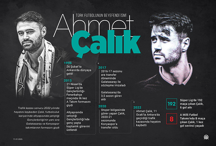 Türk futbol camiası, 2022 yılında trafik kazasında vefat eden milli futbolcu Ahmet Çalık'ı vefatının üçüncü yıl dönümünde yayımladığı mesajlarla andı.