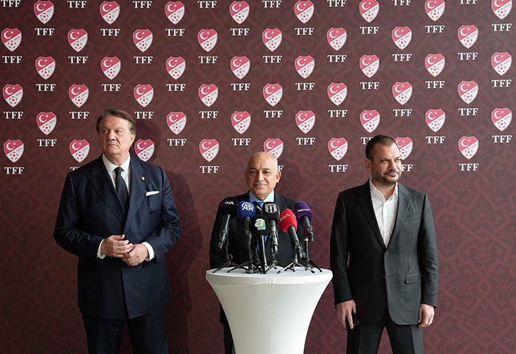 Türkiye Futbol Federasyonu (TFF) Başkanı Mehmet Büyükekşi, Beşiktaş Kulübü Başkanı Hasan Arat ve Trabzonspor Kulübü Başkanı Ertuğrul Doğan, TFF'nin Riva'daki merkezinde gerçekleştirdikleri toplantının ardından basın mensuplarına açıklamada bulundu.