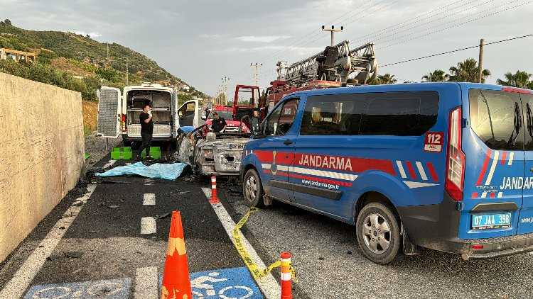 Alanya'da duvara çarpıp yanan otomobildeki 2 kişi hayatını kaybetti