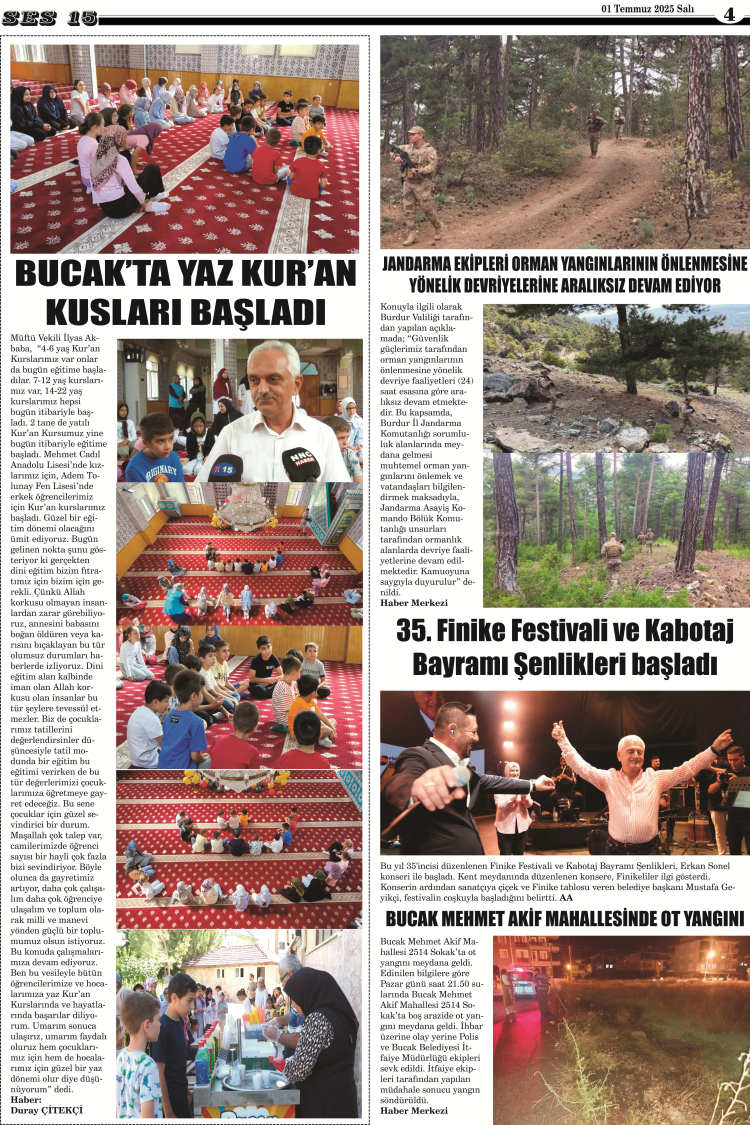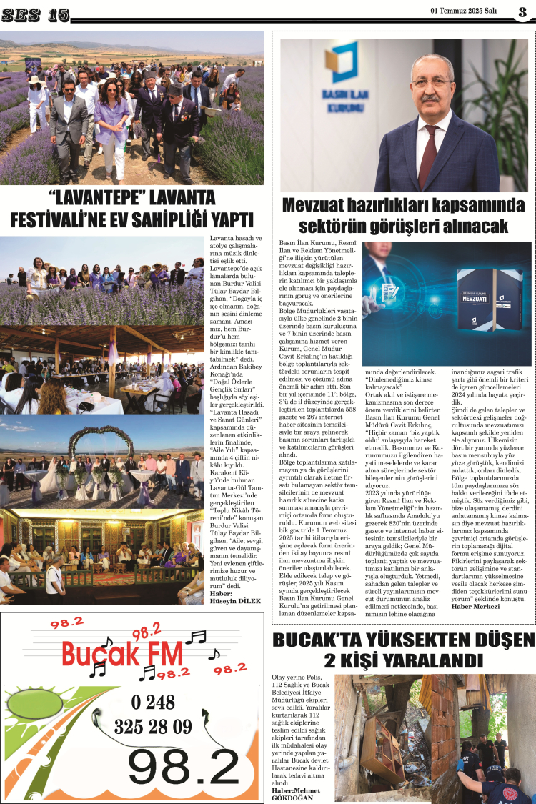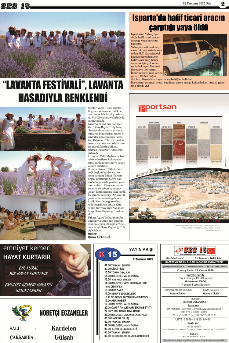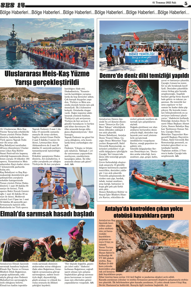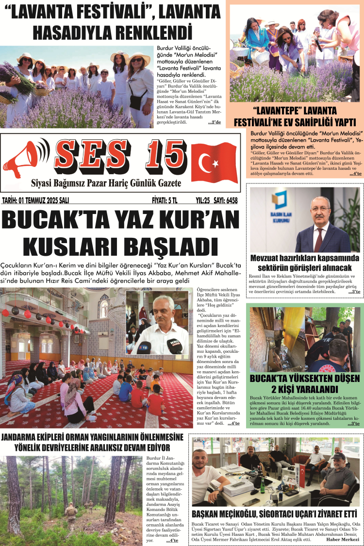 Ses 15 Gazetesi 01 Temmuz 2025 Yayını
