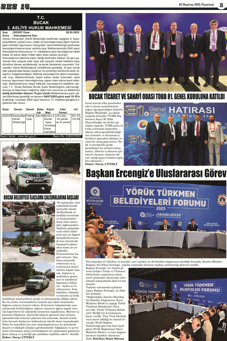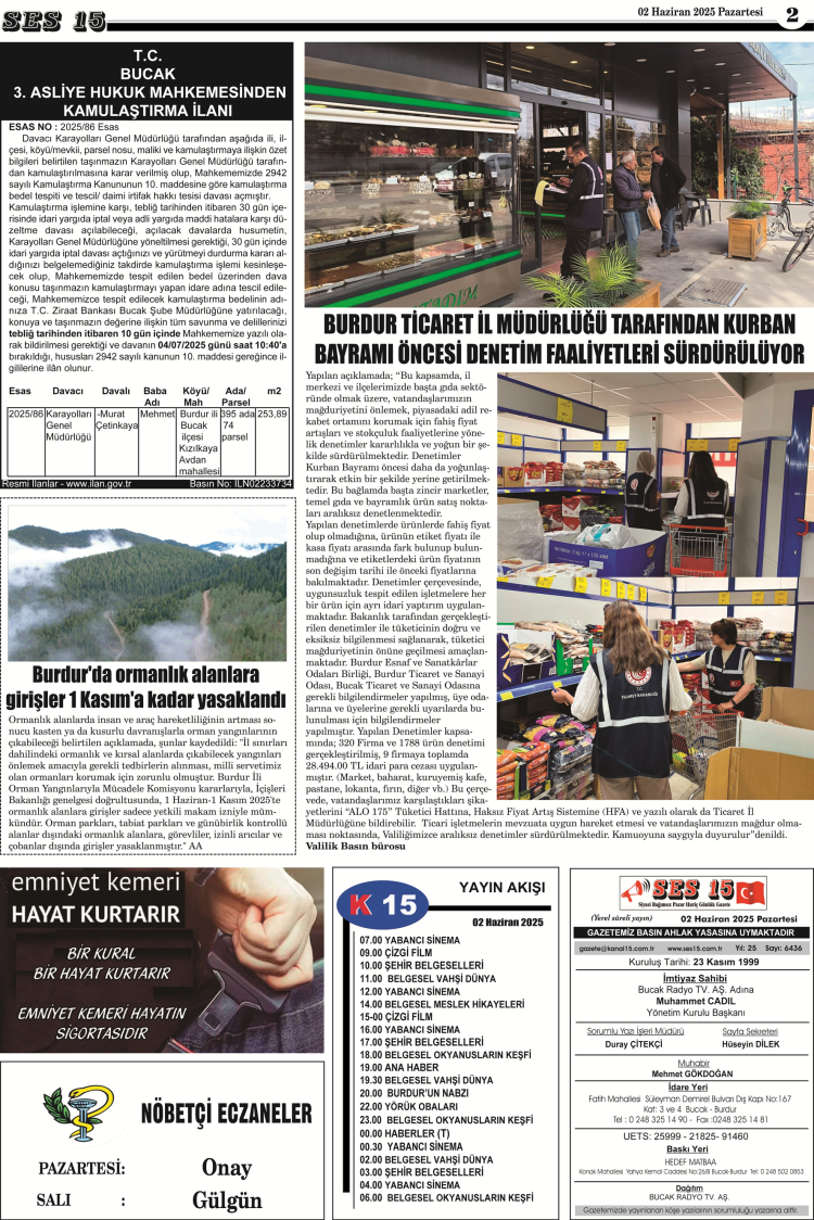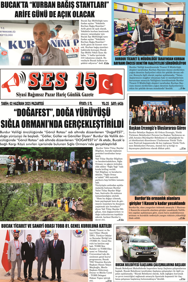 Ses 15 Gazetesi 02 Haziran 2025 Yayını