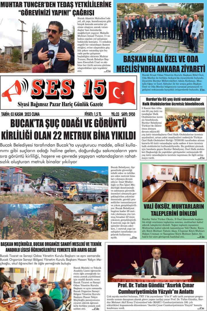 Ses 15 Gazetesi 03 Kasım 2023 Yayını