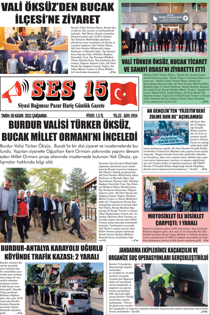 Ses 15 Gazetesi 08 Kasım 2023 Yayını