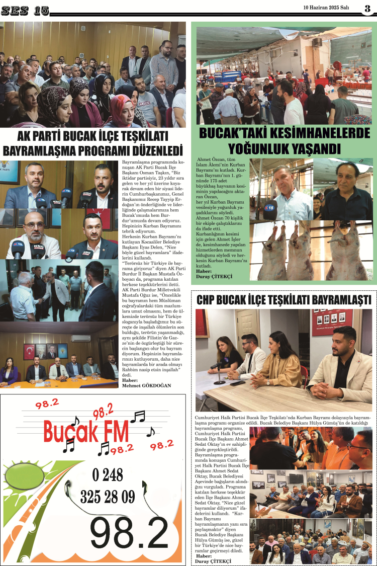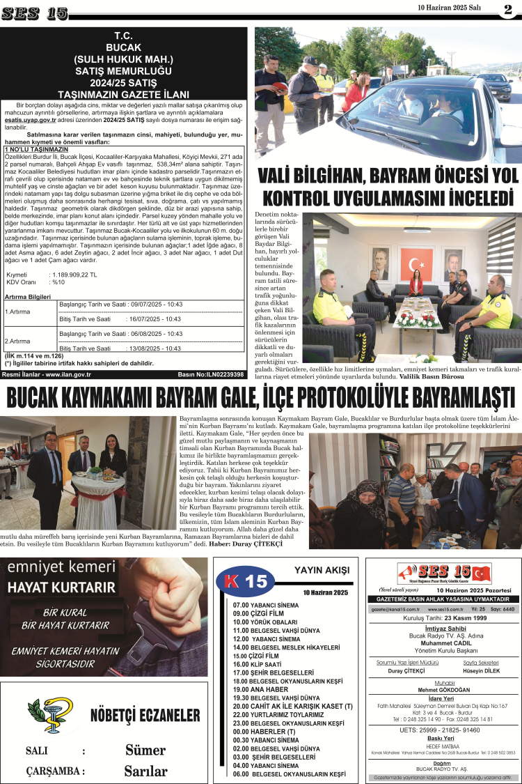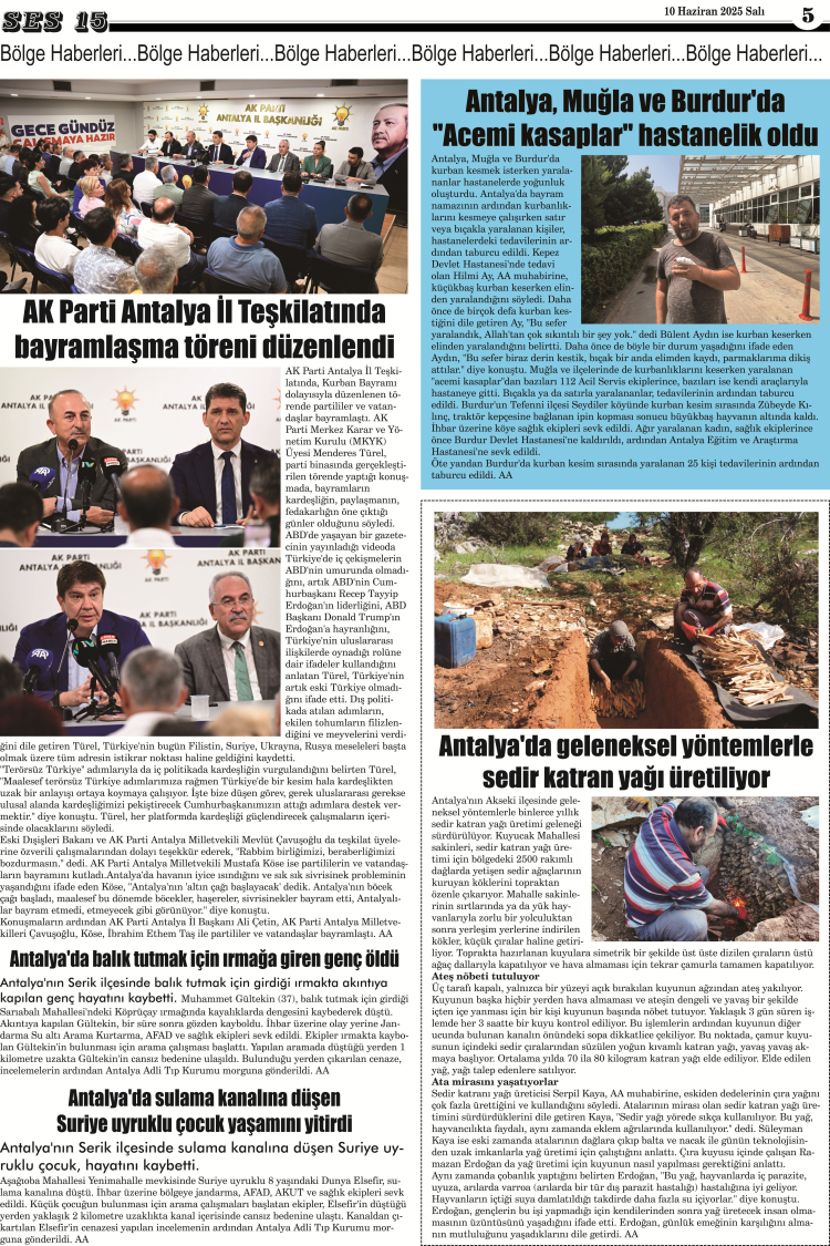 Ses 15 Gazetesi 10 Haziran 2025 Yayını