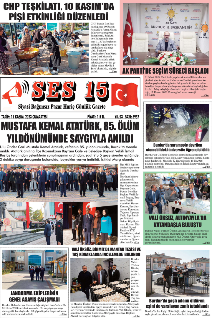 Ses 15 Gazetesi 11 Kasım 2023 Yayını