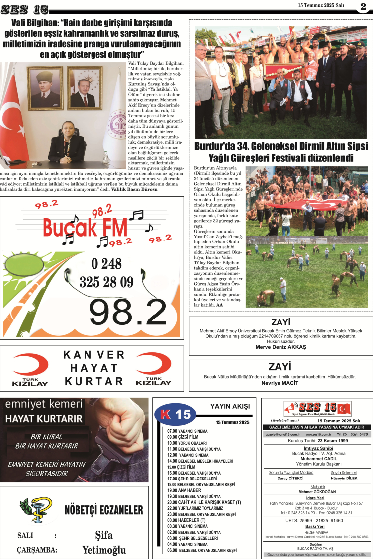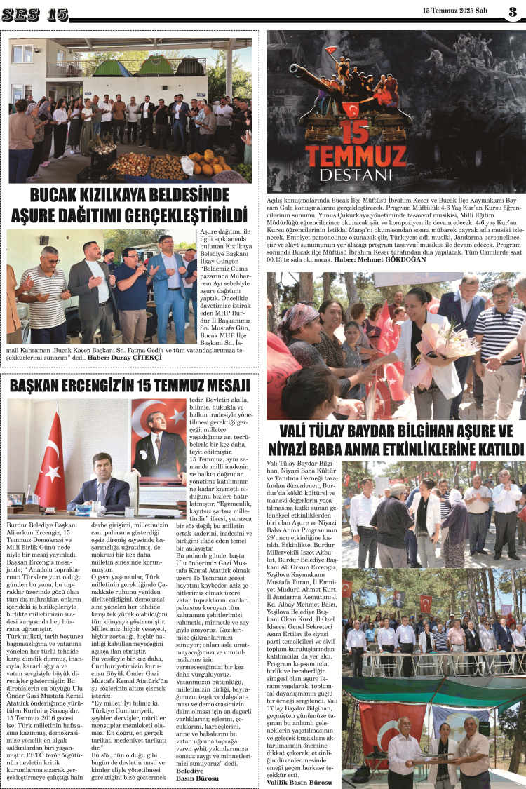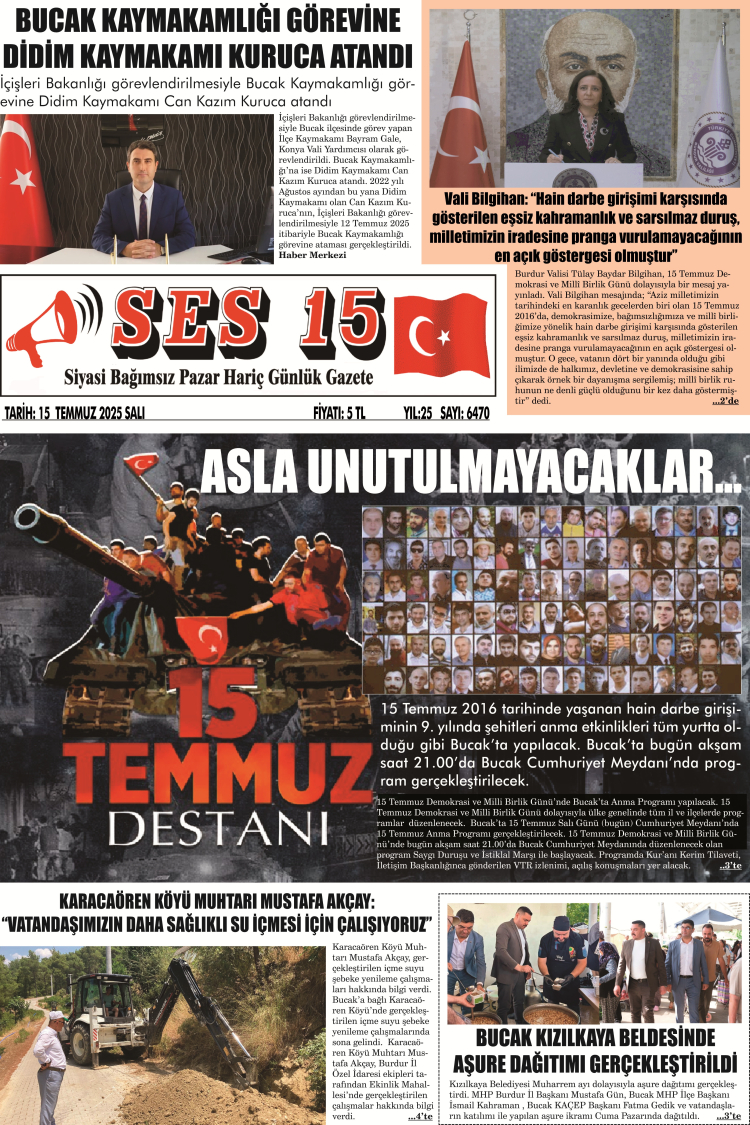 Ses 15 Gazetesi 15 Temmuz 2025 Yayını