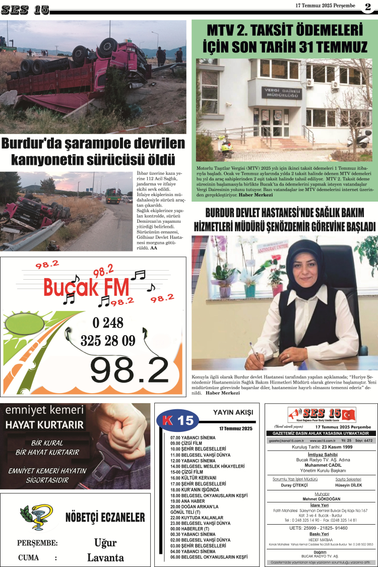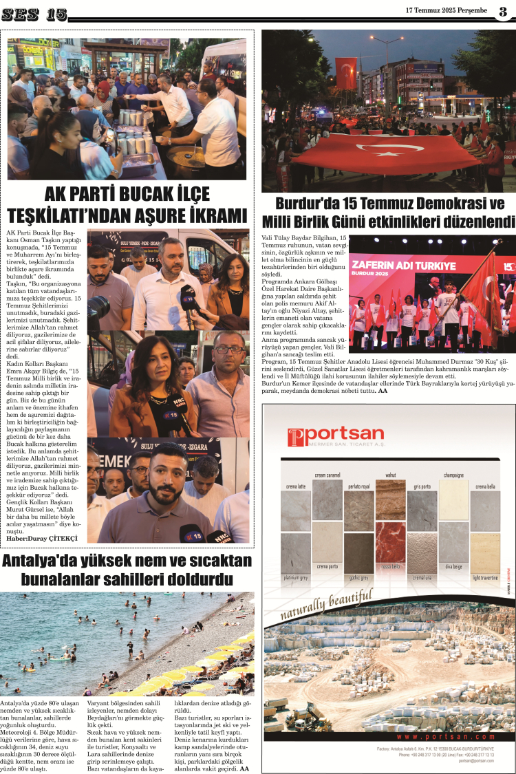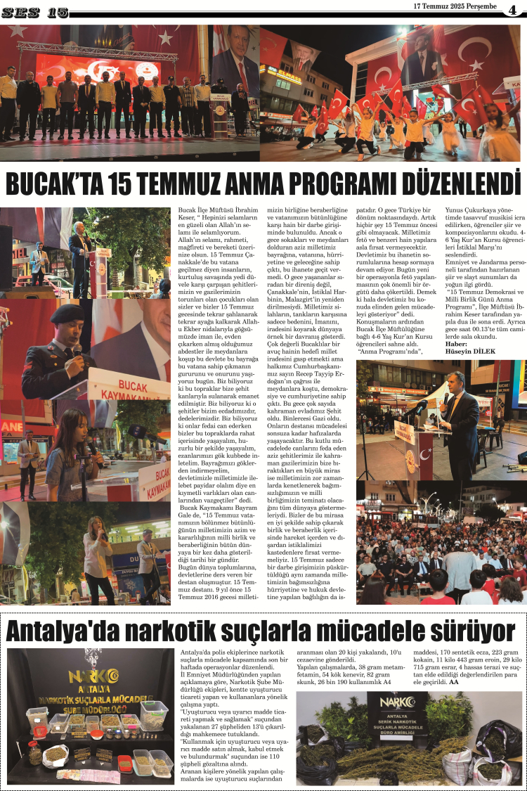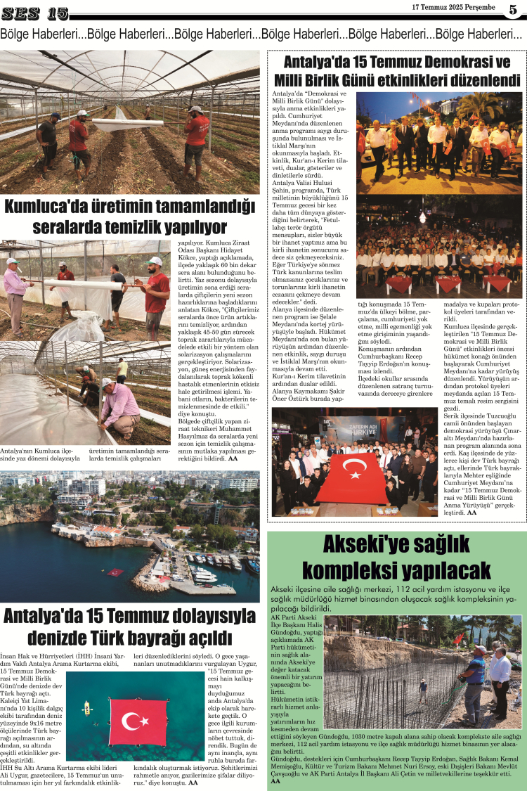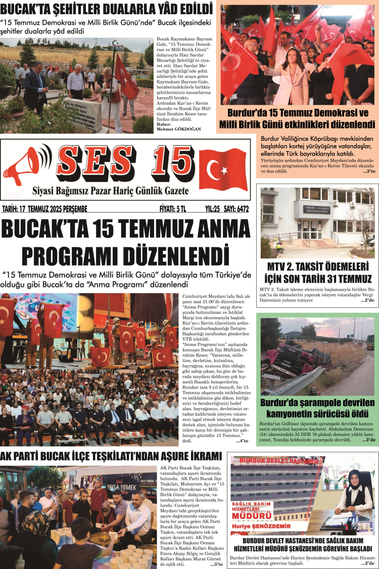 Ses 15 Gazetesi 17 Temmuz 2025 Yayını