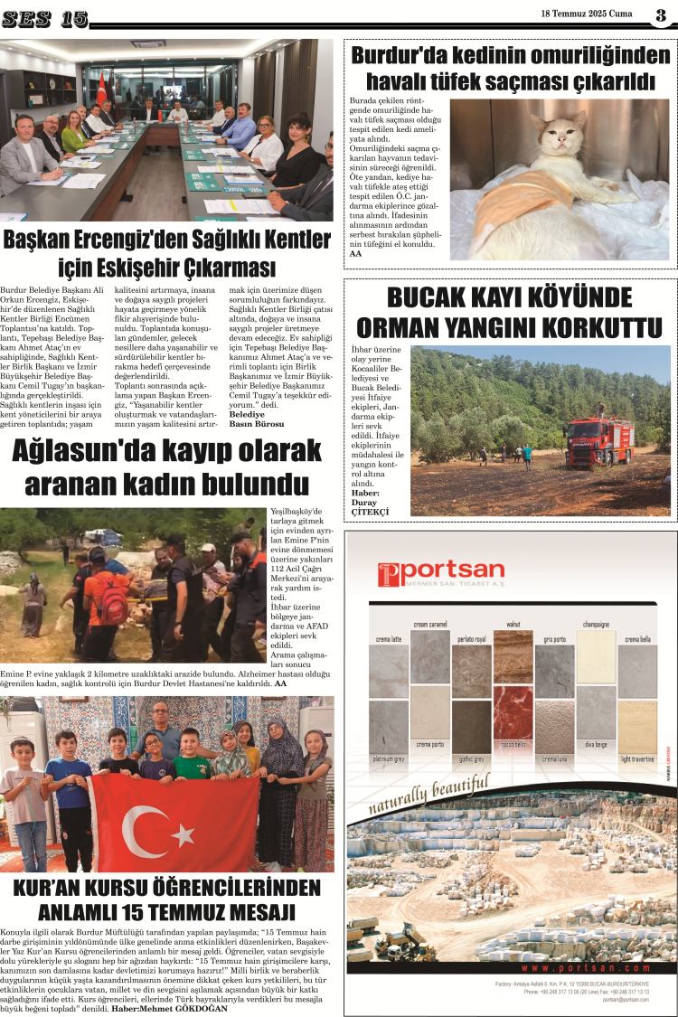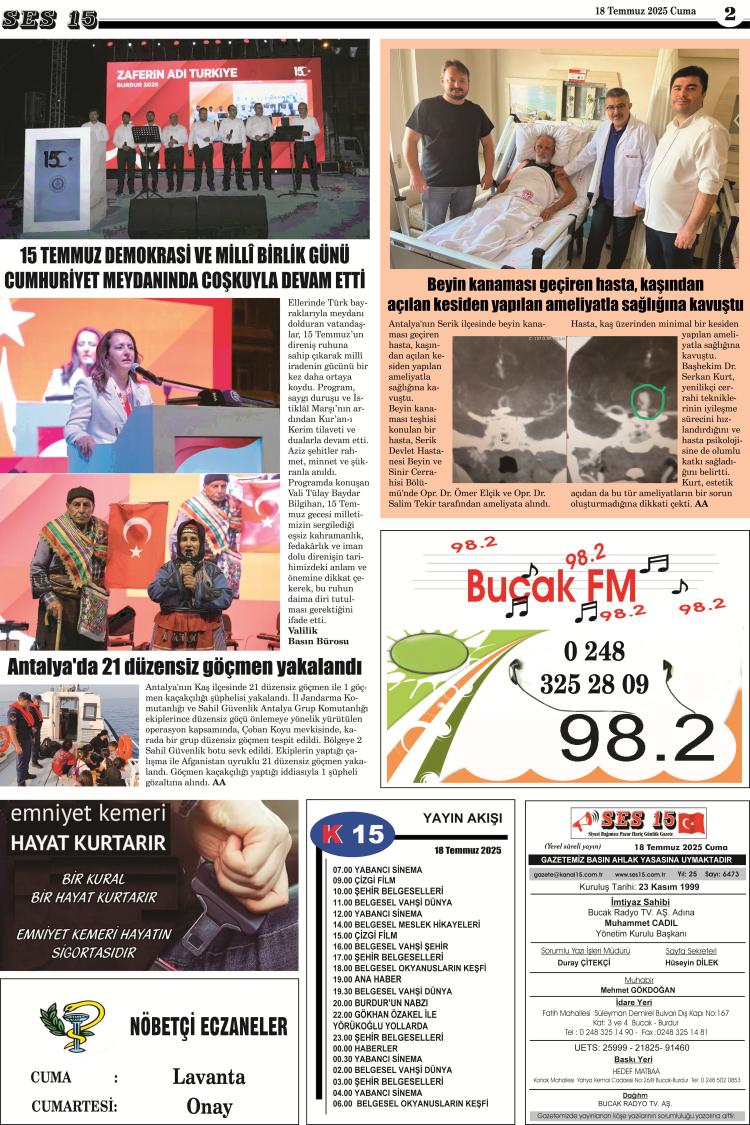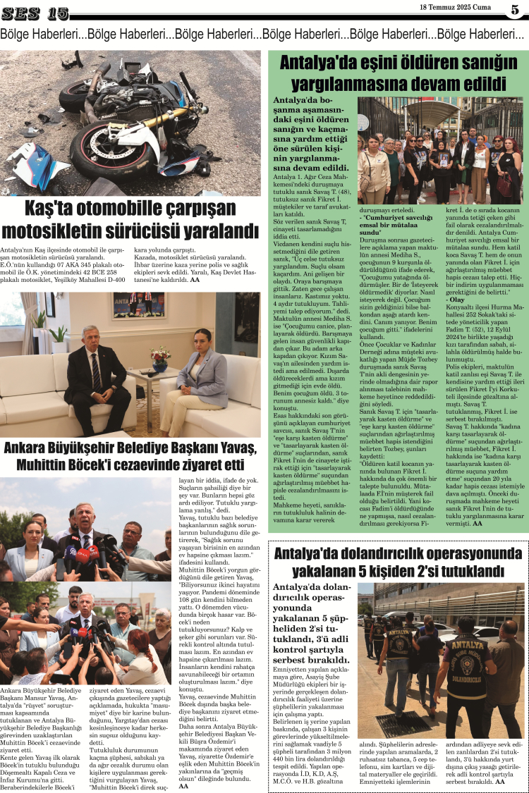 Ses 15 Gazetesi 18 Temmuz 2025 Yayını