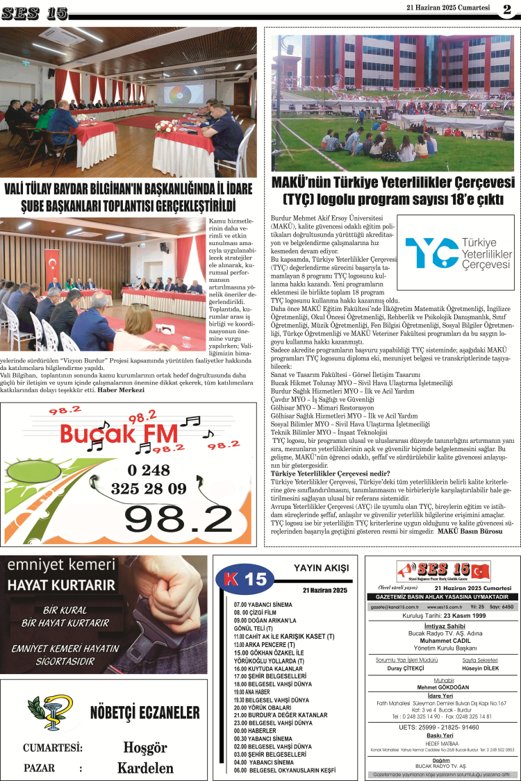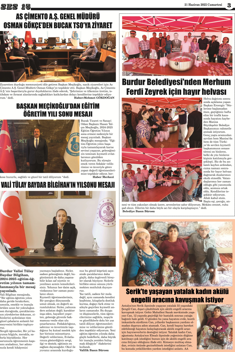 Ses 15 Gazetesi 21 Haziran 2025 Yayını