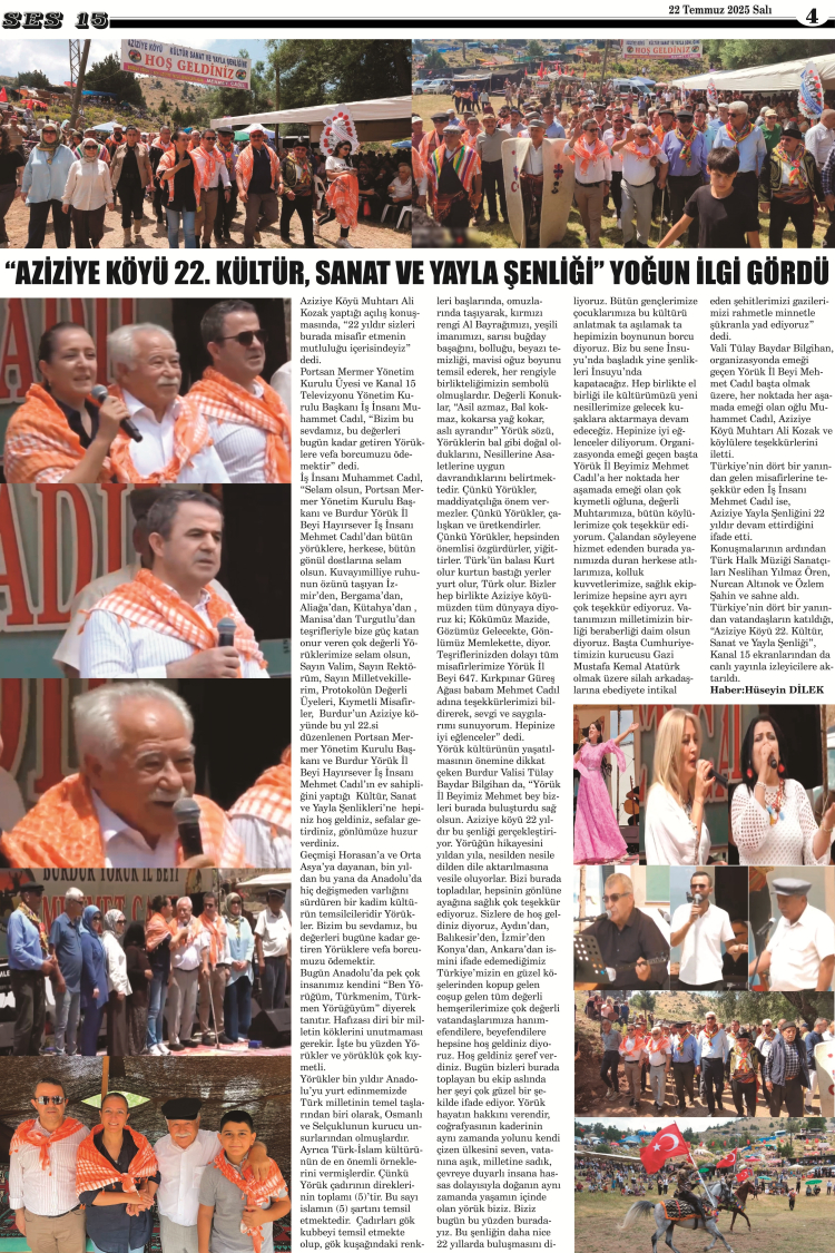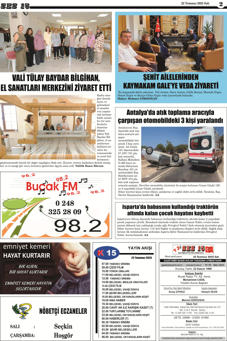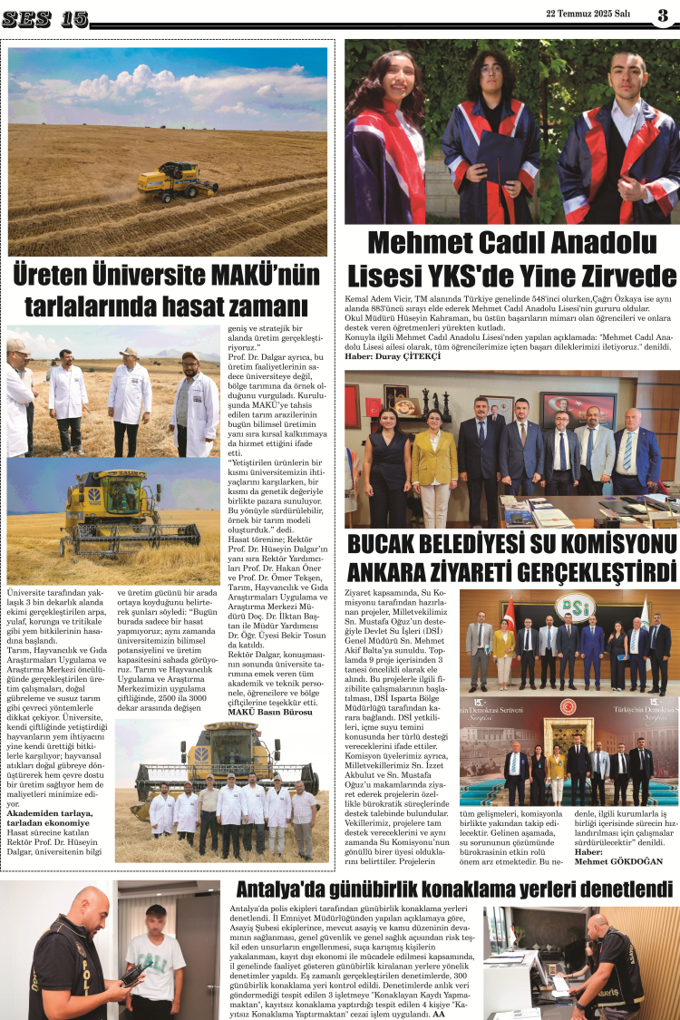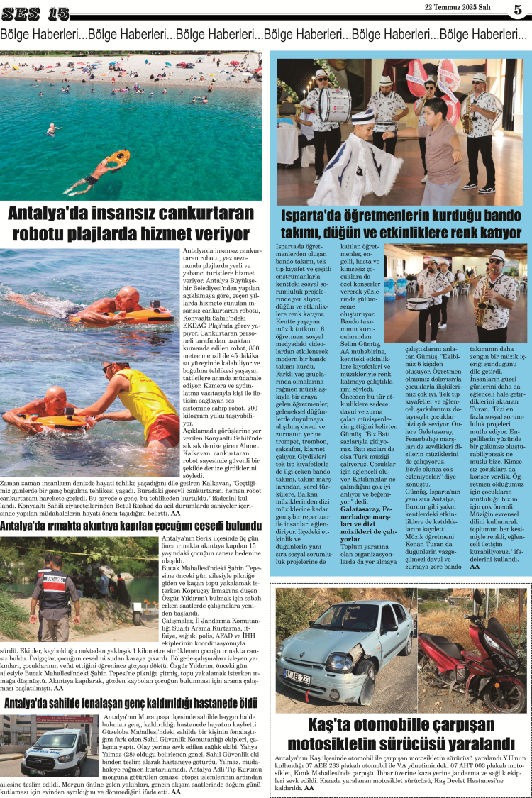 Ses 15 Gazetesi 22 Temmuz 2025 Yayını