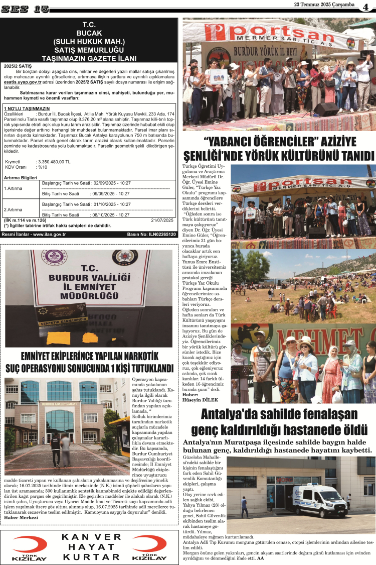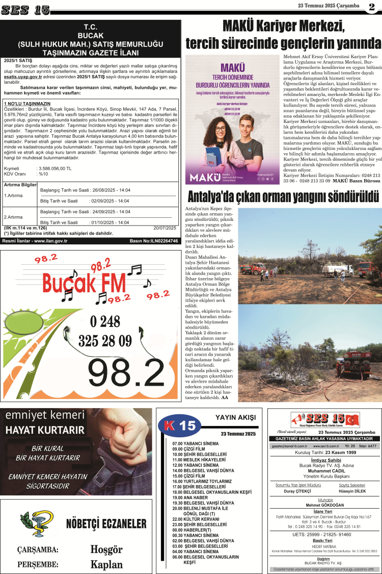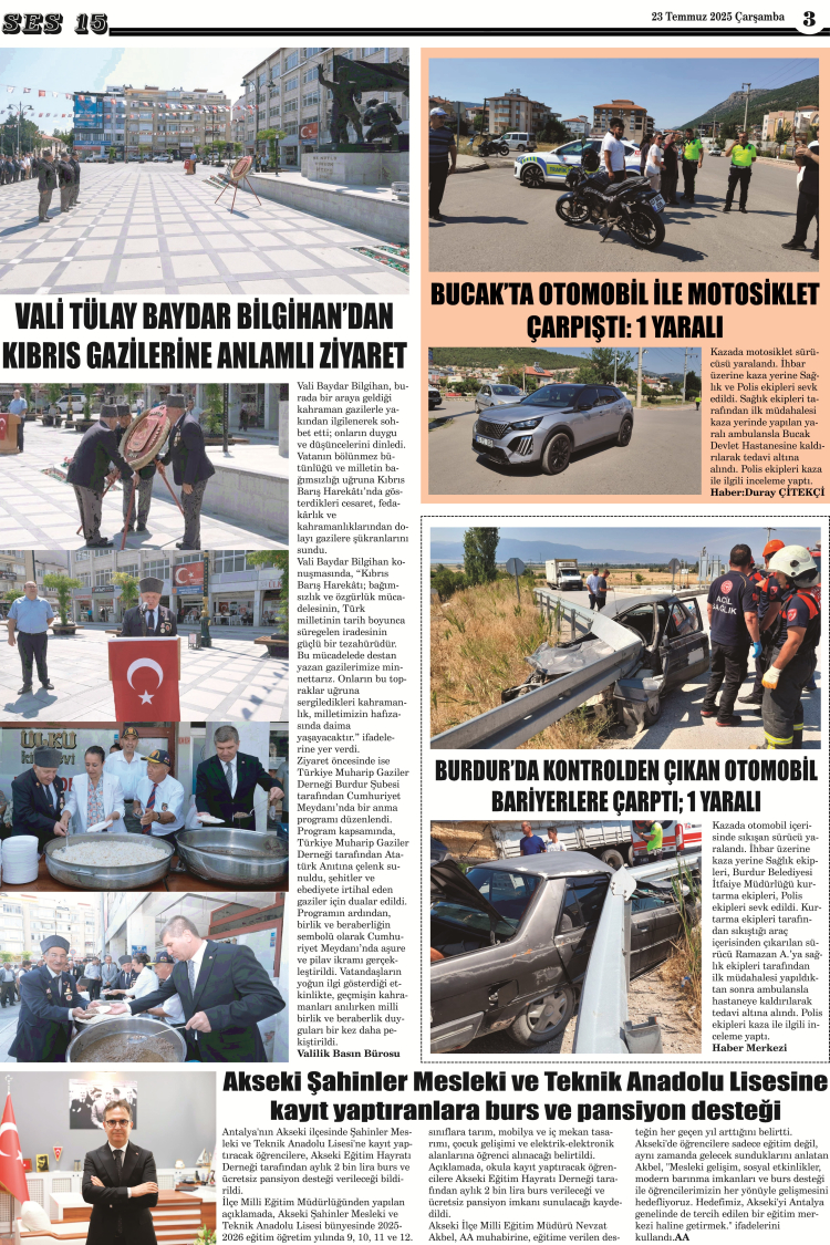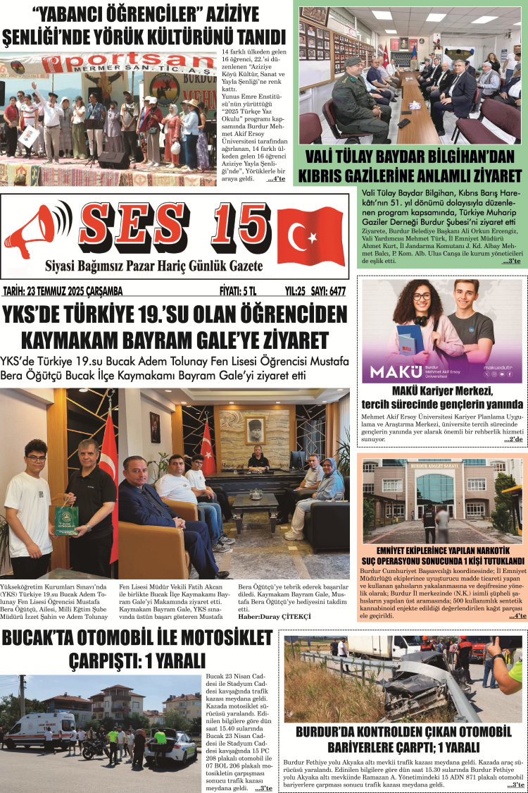Ses 15 Gazetesi 23 Temmuz 2025 Yayını